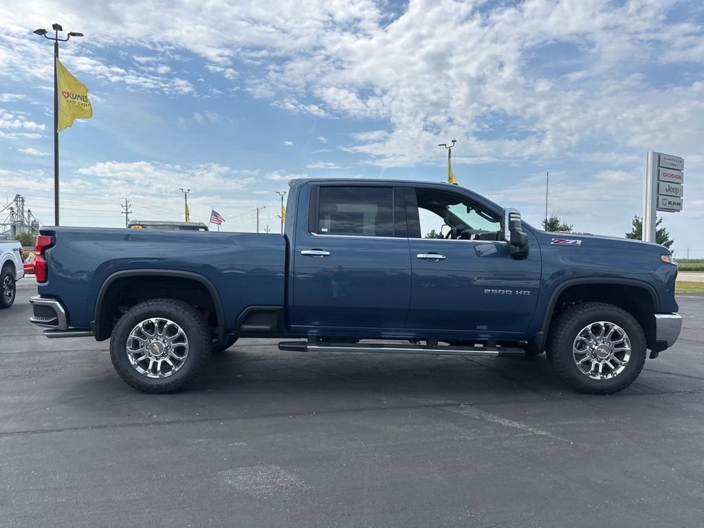 Apple CarPlay/Android Auto, Bluetooth, Rear View Camera, Rear Park Assist, Leather, Heated and Cooled Seats, Keyless Entry, Keyless Ignition, Remote Start, Navigation/GPS/NAVI, Sirius/XM, Bed Liner, Tow Package, Steering Wheel Controls, Silverado 2500HD LTZ, 4D Crew Cab, 6.6L V8, 10-Speed Automatic, 4WD, Lakeshore Blue Metallic, Black Leather, Gooseneck/5th Wheel Prep Package, LTZ Convenience Package, LTZ Convenience Package II, Preferred Equipment Group 1LZ, Safety Package, Suspension Package, Up-Level Rear Seat w/Storage Package, Z71 Off-Road Package. 2025 Chevrolet Silverado 2500HD LTZ Lakeshore Blue Metallic 6.6L V8