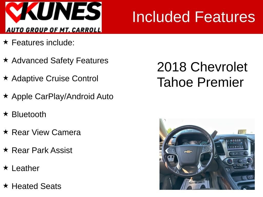 Used 2018 ChevroletTahoe Premier