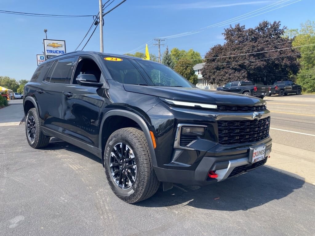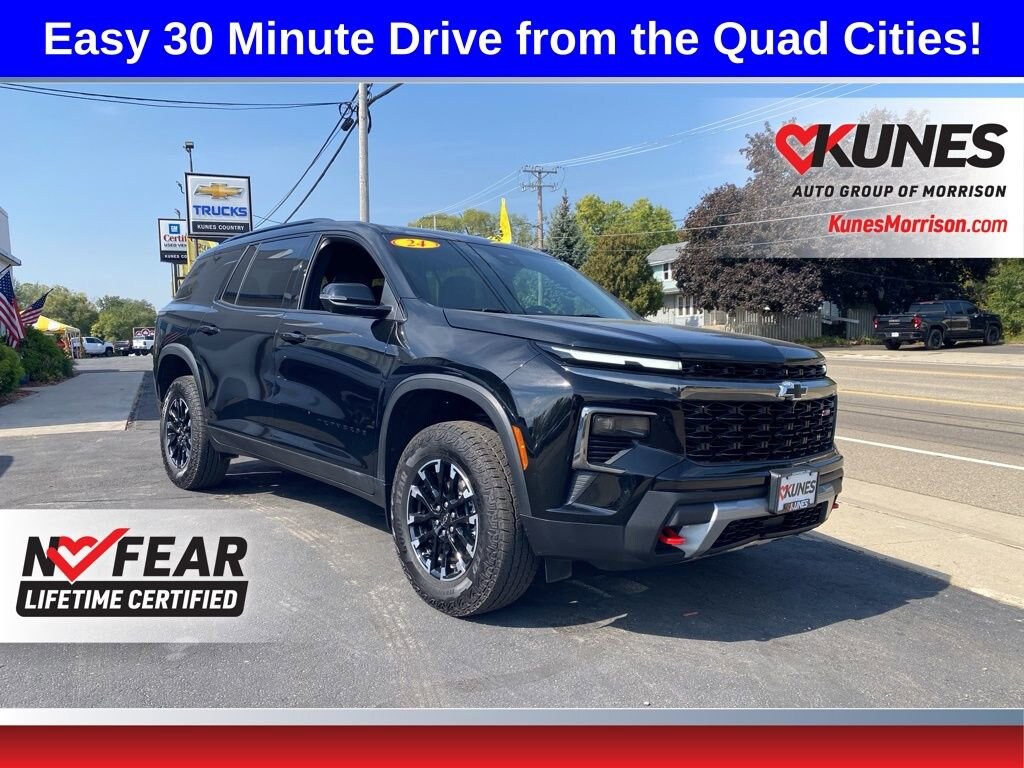 Mosaic Black Metallic 2024 Chevrolet Traverse Pricing includes $2000 Trade In Assistance, and incentive to finance with Dealership. Must trade in 10 year or newer vehicle with less than 100,000 miles. with Kunes' No Fear Certified Pre Owned Warranty Included!, Features include:, Third Row Seating, AWD, Advanced Safety Features, Navigation, Bluetooth, Apple CarPlay/ Android Auto, Heated Seats, Remote Start, Rear Park Assist, Heated Steering Wheel, Backup Camera, 2nd Row Captain Seats, Traverse Z71, 4D Sport Utility, AWD, Mosaic Black Metallic, Navigation System. Recent Arrival! Odometer is 1415 miles below market average!4D Sport Utility AWD 8-Speed Automatic 2.5L DOHCFind out why our dealerships have won DealerRater.com DEALER OF THE YEAR a whopping 10 TIMES! Call, email, or live chat with one of our friendly sales professionals now to schedule your test drive! Prices shown do not include taxes, license, and title fees and a $367.70 documentary service fee.