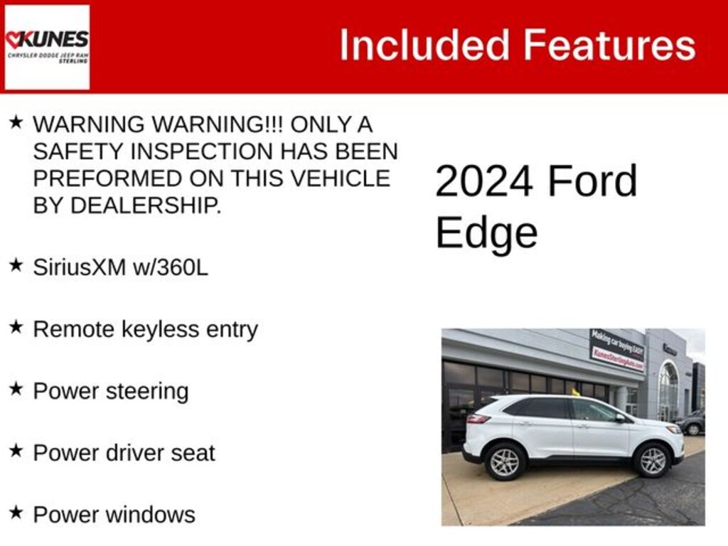 2024 Ford Edge SEL Oxford White AWD EcoBoost 2.0L I4 GTDi DOHC Turbocharged VCT